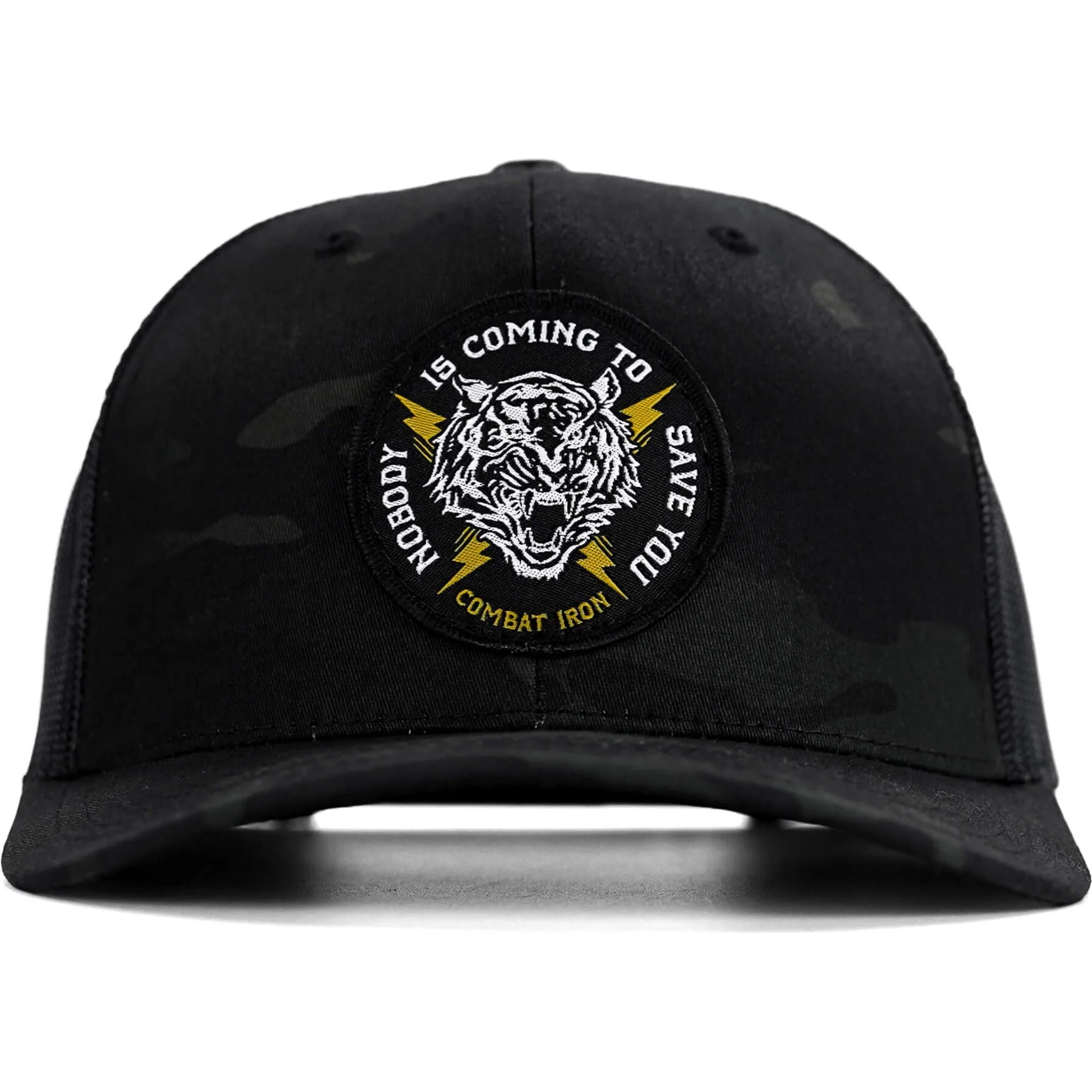 Custom made NOBODY IS COMING TO SAVE YOU designed patch sewn onto the face of theĀ snapback.Ā Made with a NO sweat band to help control and remove sweat whileĀ wearingĀ and custom breathable mesh backing, durable and usability is never lacking. Produced with the Pro Shape crown and semi curved visor capable to beĀ more or less archedĀ per the customer's style.Ā